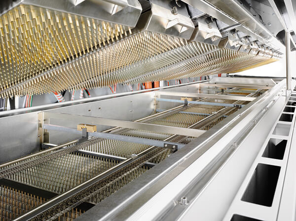 The Ersa HOTFLOW 3/14 reflow system is of robust design and manufactured entirely from steel, welded air-tight, powder coated and with interior electric cabinet and a PC operating terminal. Features include the motorized hood opening, quick-change convection heater cassettes, multi-level process gas cleaning and a powerful and effective cooling zone.